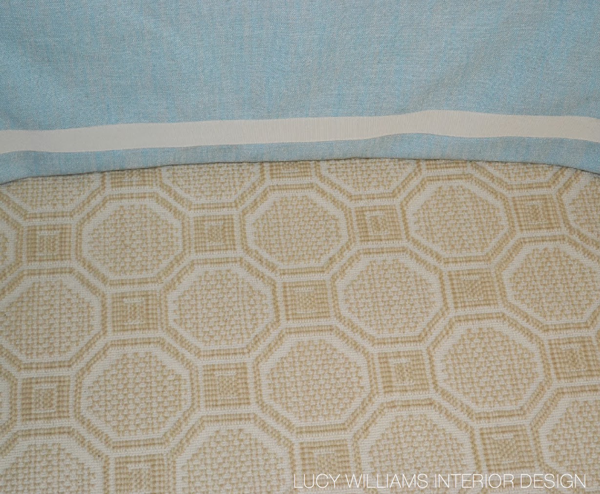 WE ALSO CUSTOM MADE THE HEADBOARD AND MATCHING BEDSKIRT. THE 2 BEDSIDE CHESTS CREATE A NICE BALANCE AND PROVIDES AMPLE STORAGE / SURFACE AREA.